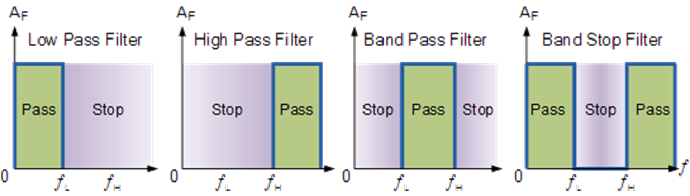 There are four basic types of ideal electronic filters: