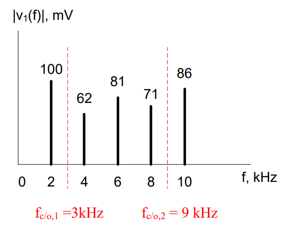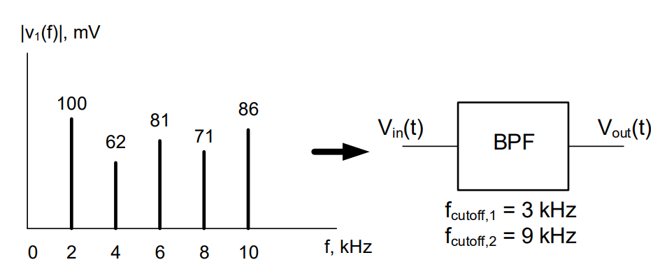 Assumptions: The BPF will cut off frequencies starting at 3kHz and 9kHz.