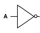 In a digital logic circuit diagram, the symbol for a NOT gate is a triangle with a small circle on the front, as shown below.