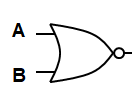 The symbol for a NOR gate is shown below. Note the only difference between the OR and NOR symbols is the small circle on the front to indicate the NOT operation after the OR operation.