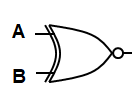 The symbol for an XNOR gate is shown below. Note the only difference between the XOR and XNOR symbols is the small circle on the front to indicate the NOT operation after the XOR operation.
