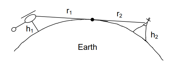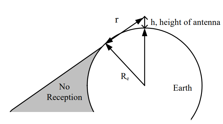 For terrestrial and even some airborne applications (i.e., non-space), we can assume that \(R_{e}\) is much greater than the antenna height (\(R_{e} \gg h)\), so the \(h^{2}\) can safely be ignored. This results in a maximum LOS range equation of: