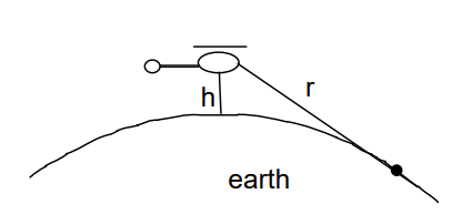 If we assume the terrain is relatively flat, we can use a simple equation to give us a good idea of how far the helicopter (or anything else) can see. Consider an antenna sitting at height, h, above sea level. The maximum range, r, between transmit and receive antennas is calculated as the distance from the transmit antenna to the point that is tangential to the surface of the earth as shown in Figure 8.