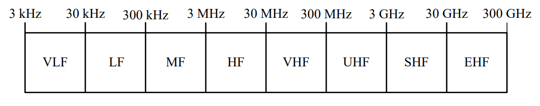 The lower end of the electromagnetic spectrum, called the RF spectrum, is subdivided into eight bands spanning from 3 kHz to 300 GHz. Each band has a name, as shown in Figure 1. Civilian applications, such as commercial AM and FM radio, television, cellular telephony, civilian aviation navigation, and air traffic control frequencies are found in this portion of the electromagnetic spectrum. These bands are also used in many military applications: global positioning system (GPS); RADAR; munitions guidance and fusing systems; strategic and tactical communications systems; and intelligence, surveillance, and reconnaissance (ISR) systems.